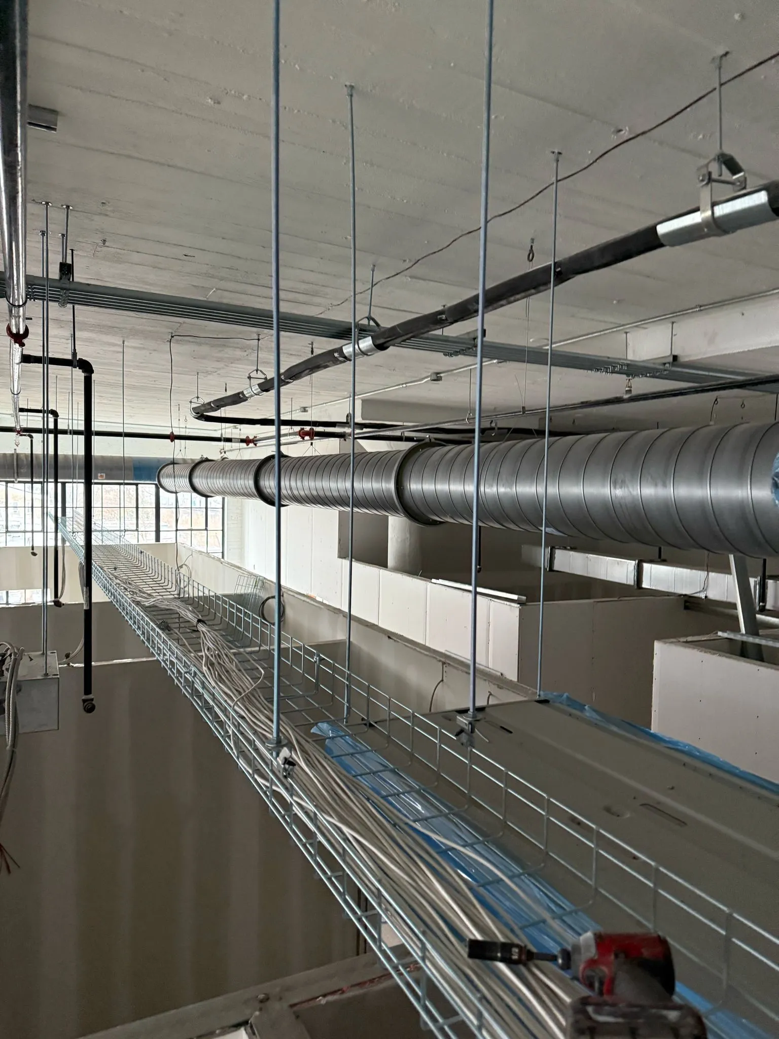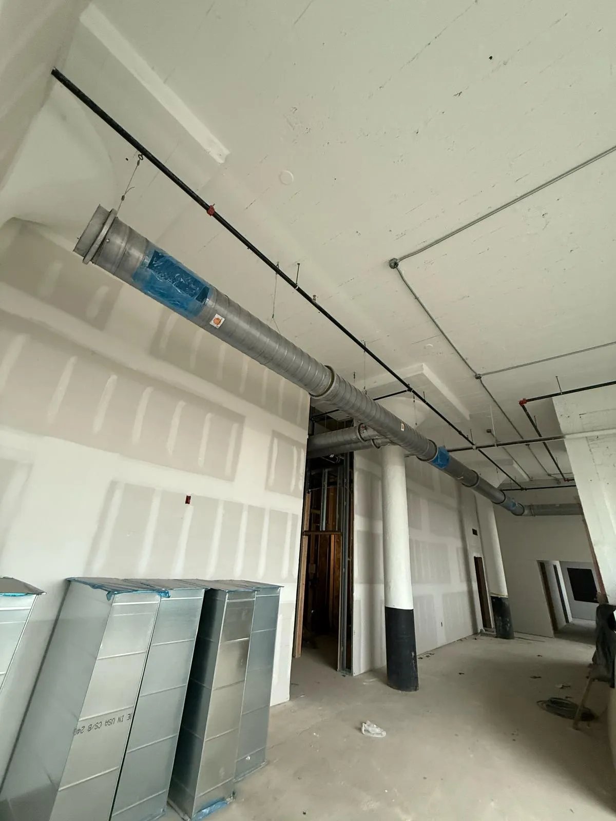 UniProAir provided a full HVAC installation for a production-type facility including equipment installation, duct systems, exhaust, controls, and complete balancing and commissioning. The project required close coordination due to specialized equipment and production layout requirements.